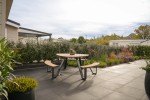 De prachtig aangelegde voortuin beslaat 130 m² en biedt een prachtige plek om te ontspannen en te genieten van de rustige omgeving.