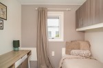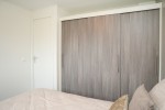 De ruime hoofdslaapkamer is voorzien van een prachtige vaste kastenwand. De 2e slaapkamer is ook te gebruiken als werkkamer of berging. Verder een ruime badkamer met douche, toilet en stijlvol badkamermeubel.