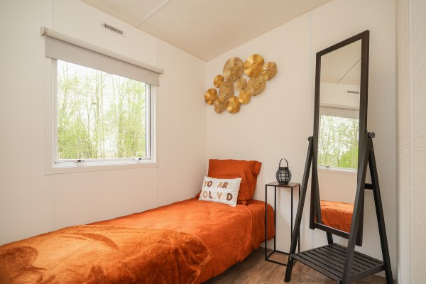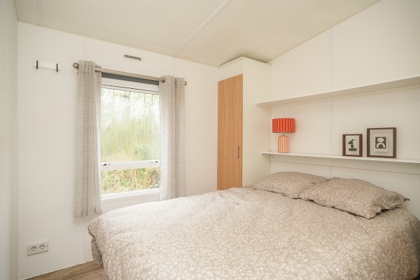 Het chalet beschikt over twee slaapkamers: de ouderslaapkamer en een kleinere slaapkamer. De moderne badkamer is voorzien van een douche met thermostaatkraan, een stijlvol badkamermeubel en toilet.
