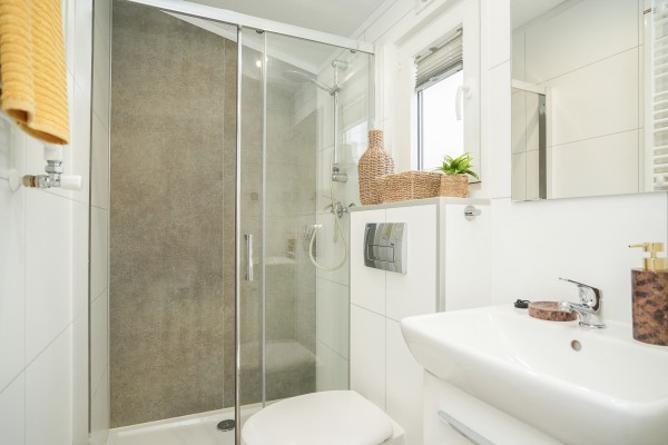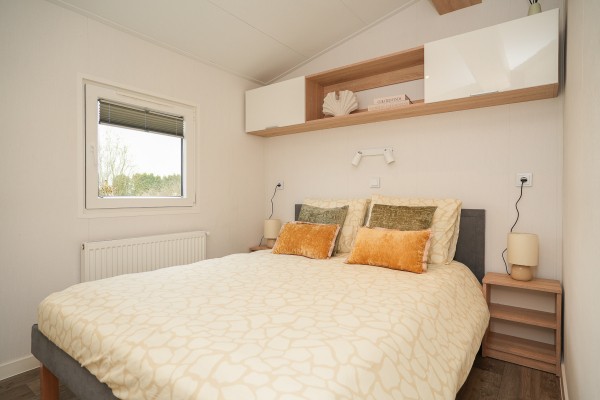 Het chalet beschikt over twee slaapkamers: de ouderslaapkamer beschikt over een vaste kastenwand. De kleinere slaapkamer is groot genoeg voor 2 eenpersoonsbedden. De moderne badkamer is voorzien van een douche, stijlvol badkamermeubel en een toilet.